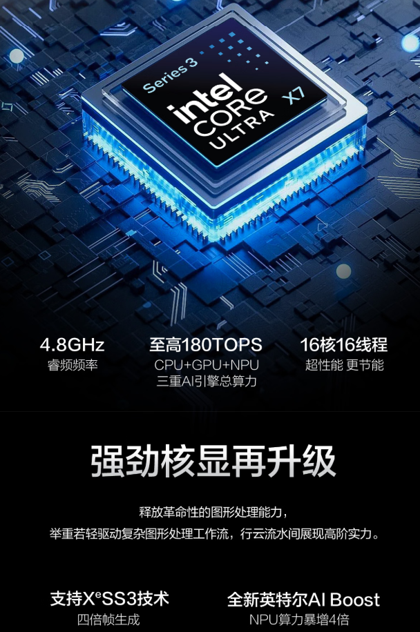 华硕拂晓Ultra搭载英特尔酷睿UltraX7358H处置器,它能滤除布景杂音,零件总AI算力高达180TOPS,